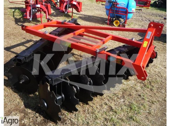 Szerokość robocza 1,6 m, ilość talerzy 2x7 szt., zapotrzebowanie mocy 30 KM, masa 340 kg, cena 2670 zł, z wałkiem strunowym 3400 zł